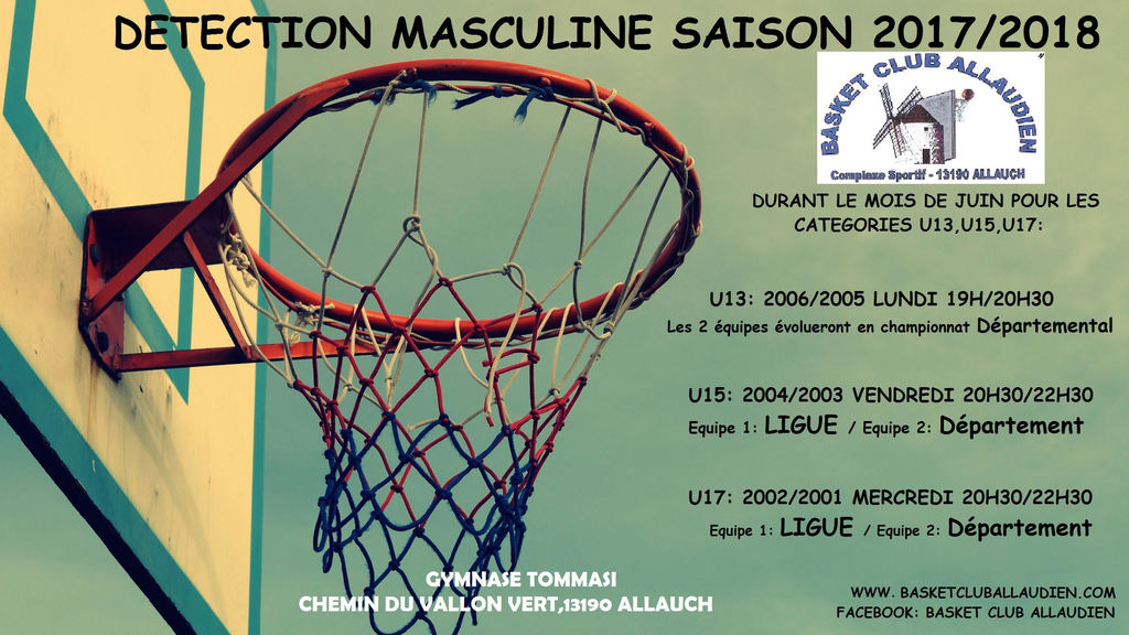 - VENDREDI 02 JUIN DE 20H30 A 22H30 A TOMMASI, débuteront les sélections des U15 Masculins 1 Région PACA et des U15 Masculins 2 Département.