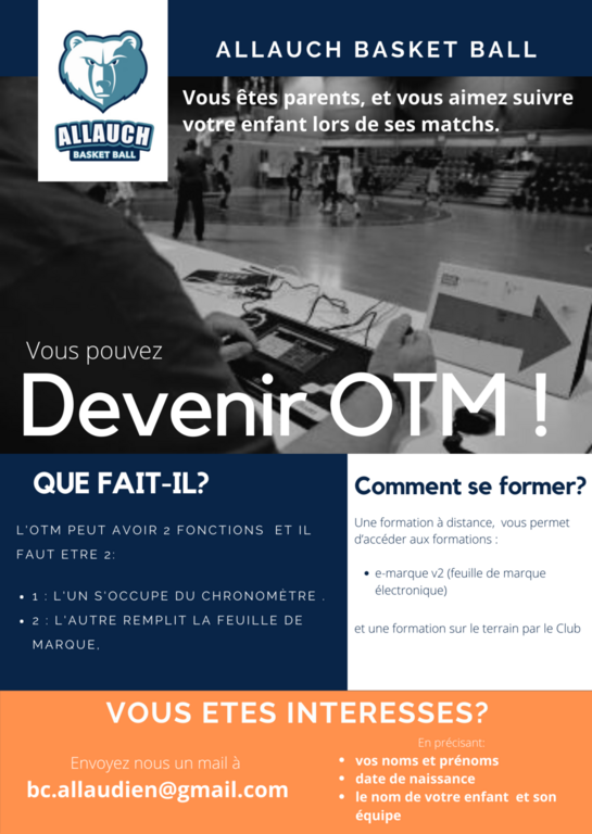 L'OTM peut avoir 2 fonctions essentielles mais qu'il n'exerce pas en même temps ! Pour le bon déroulement d'un match, on a besoin de joueurs, bien sûr, mais aussi d'un ou plusieurs arbitres et de 2 personnes à la table de marque : 2 OTM.