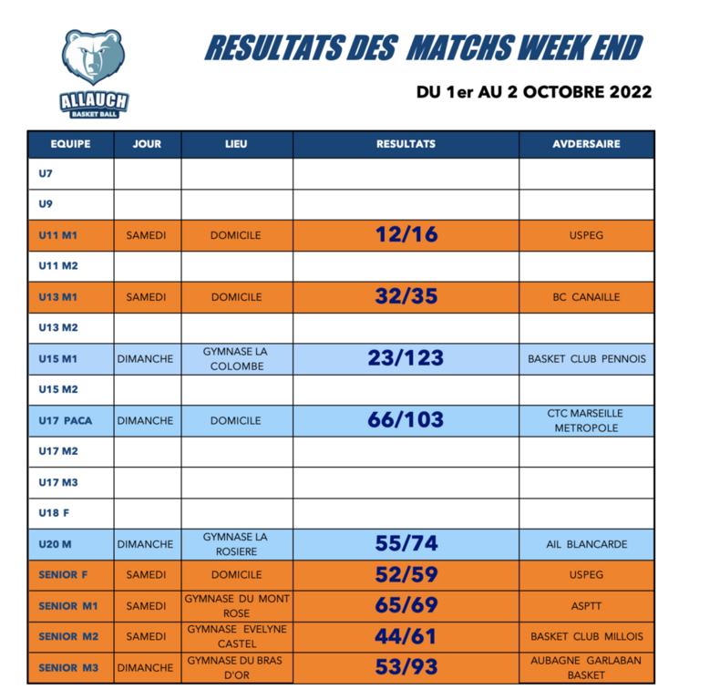 PLANNING DES ENTRAINEMENTS 2022-2023